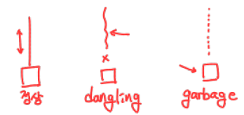 Java 클래스 인스턴스들은 묵시적으로(명시적인 기억공간 회수 연산자가 없음) 회수되므로 허상 참조가 존재할 수 없음.