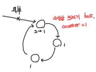 셀들의 모임이 순환적으로 연결되어 있다면 문제가 복잡해짐. (순환 리스트에 속한 셀은 적어도 1의 참조 계수기를 갖기 때문) → 해결책들이 제시되었으나, 배우지 않아 SKIP