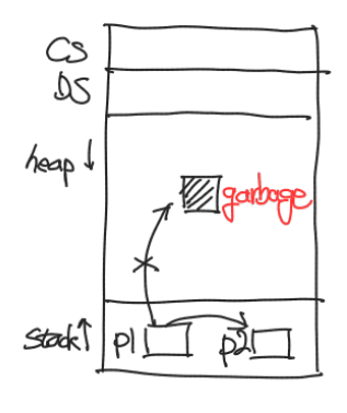 // 이제 malloc()으로 할당받은 힙-동적 변수는 쓰레기가 됨