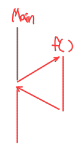 - 호출 프로그램 단위는 피호출 프로그램의 실행 중에 중단됨.(일시정지) 즉, 임의의 주어진 시간에 수행 중인 부프로그램은 오직 하나임.