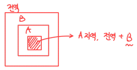 모든 포함 영역이 활성이고 가시적인 장소에서 부프로그램이 호출된다면, 부프로그램의 중첩은 어떠한 문제도 야기하지 않음. (B가 실행되고 A가 실행되는 경우)