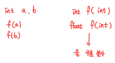 어떤 부프로그램이 호출되었는지는 "실 매개변수 리스트"와 "반환값의 타입"에 의해 결정됨.
