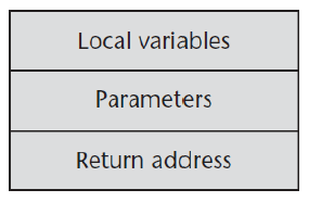 복귀 주소, 동적 링크, 매개변수는 호출자에 의해서 활성화 레코드 인스턴스에 놓여지기 때문에, 이 항목들이 먼저 나타나야 함. 지역 변수는 피호출 부프로그램에서 할당 및 초기화되기 때문에 활성화 레코드의 마지막에 나타남.