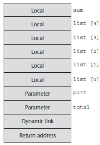 ● 스택 동적 지역변수를 갖는 부프로그램의 구현