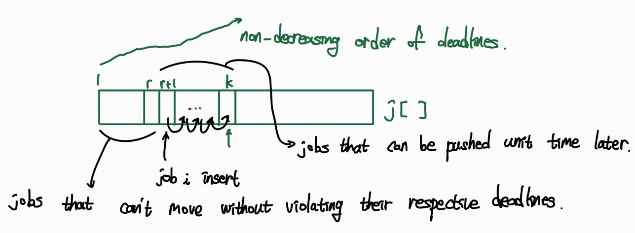 배열 j안의 $k$개의 작업은 마감기한이 증가하는 순서로 정렬되어 있음.