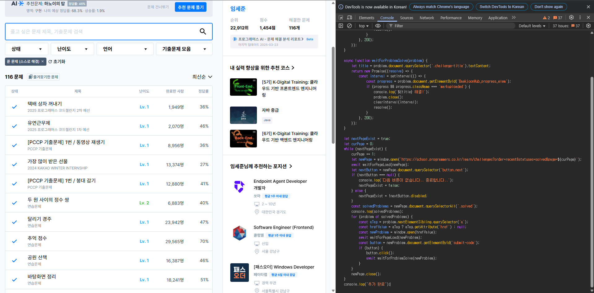 | [BOJ] 백준허브 이미 풀었던 문제 등록 자동화 (0) | 2025.03.23 |